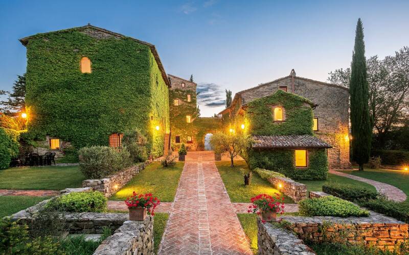 La Sommità is a beautifully restored Italian villa for rent, preserving its 600-year-old charm while offering modern luxury just 20 minutes away from Reschio. The villa features terracotta floors, oak-beamed ceilings, and rustic yet elegant furnishings, creating a perfect blend of country style and contemporary comfort. Set amidst the iconic landscapes of Umbria, the villa offers a serene retreat with a pool, tennis court, and sauna, ideal for those seeking relaxation. Guests are accommodated in five exquisitely decorated stone villas, each fully equipped with modern kitchens and amenities. Its prime location also provides easy access to cultural hotspots including Assisi, Gubbio, and Spoleto.