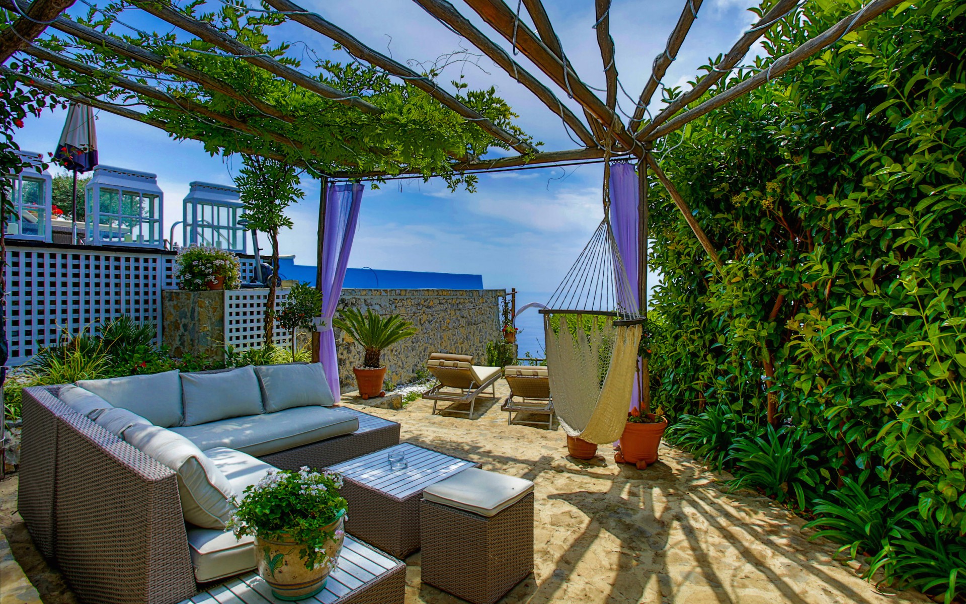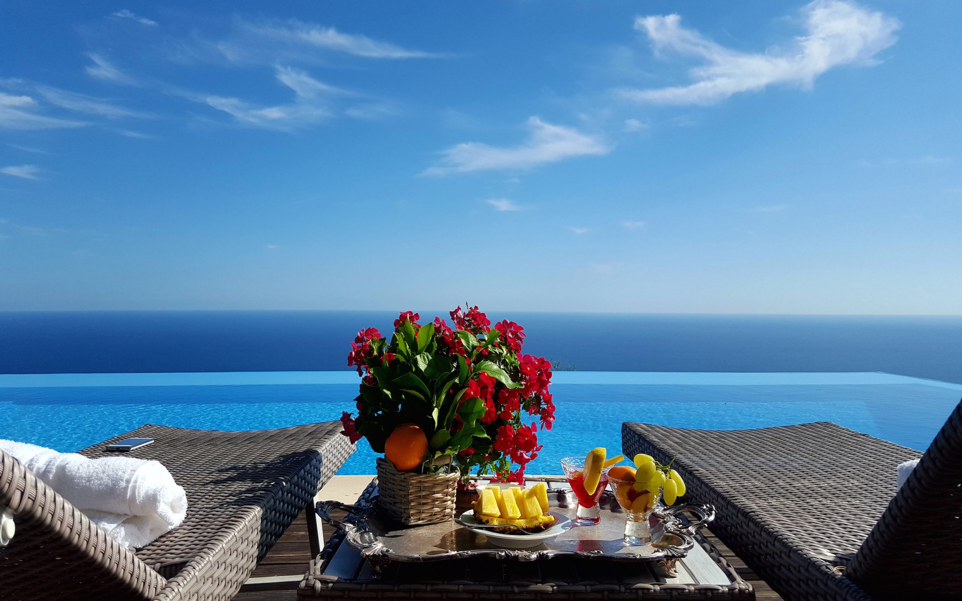 concierge service, daily maid service from 10am to 3pm, daily continental breakfast from 8am to 11am (cost of food included), daily change of pool towels, daily change of bathroom towels, change of bed linen once on Wednesday, heating, electricity, air conditioning, one daily transfer from and to Amalfi town, welcome buffet dinner, porter service upon arrival and departure for departures before 8am and after 8pm, final cleaning.not included