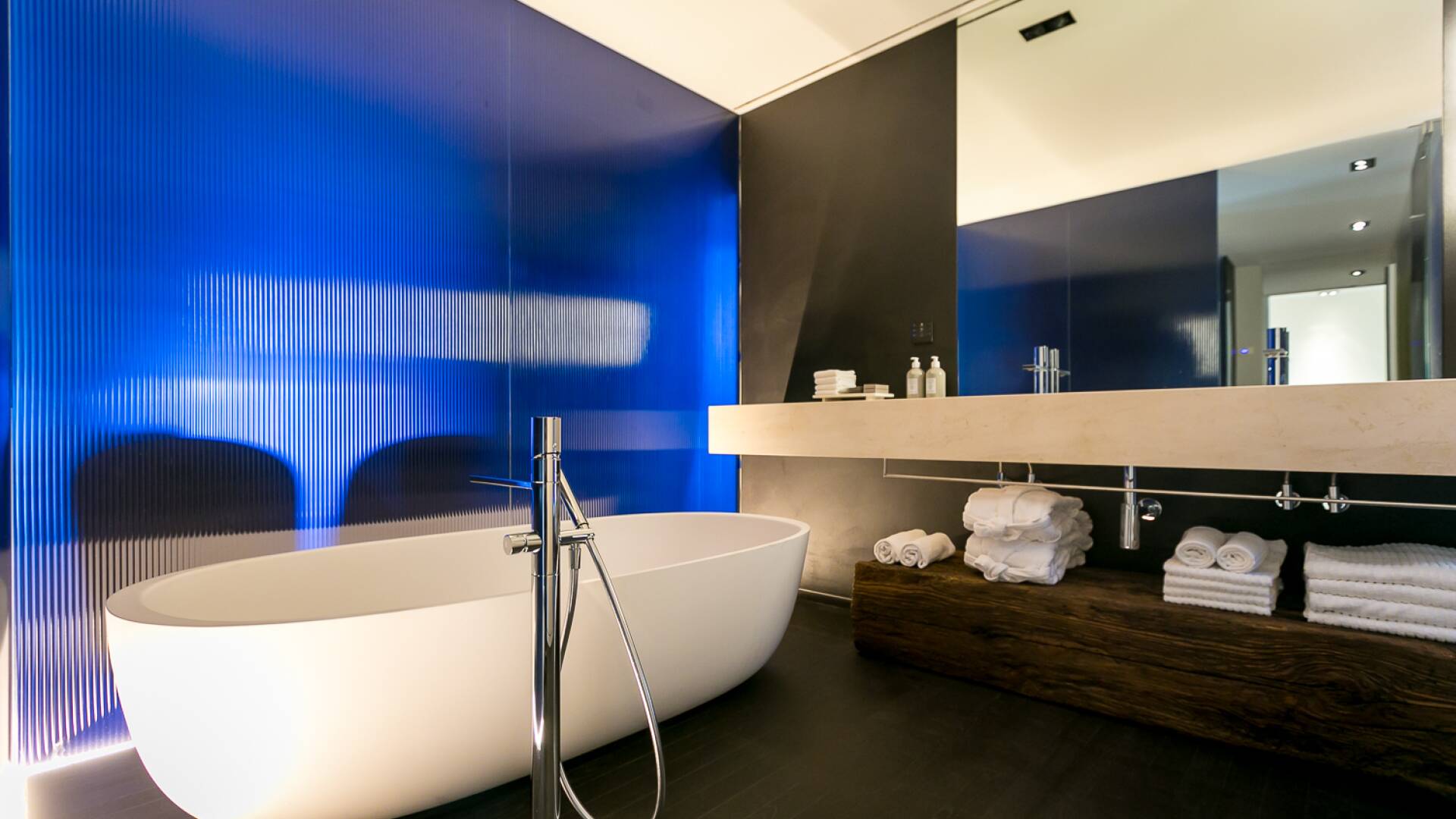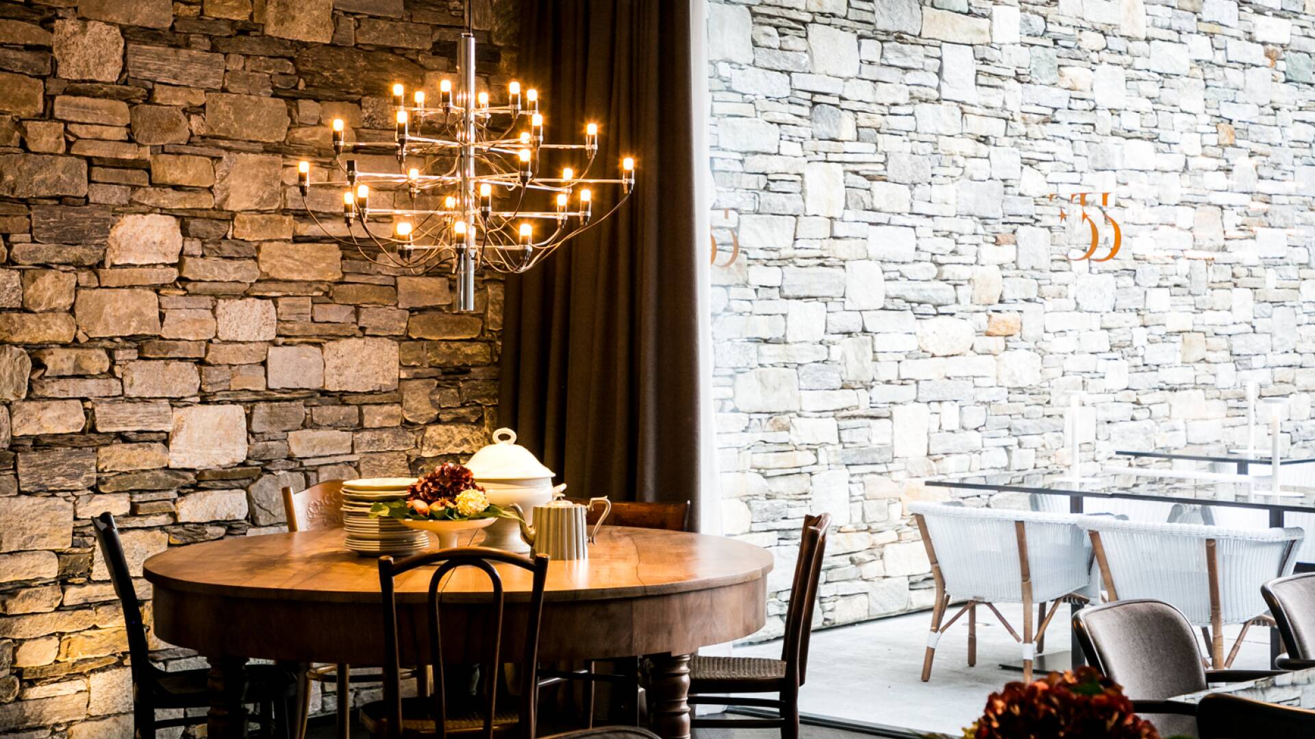 On the ground floor, the living room has two spacious sitting areas and the large dining room with stone made walls offers beautiful picture windows over the garden. The view over the serene lake and majestic mountains in the background from the floor-to-ceiling picture windows make the location feel like a dream.