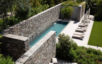 the bedrooms on the first floor can also be accessed through an outdoor staircase from the swimming pool area.