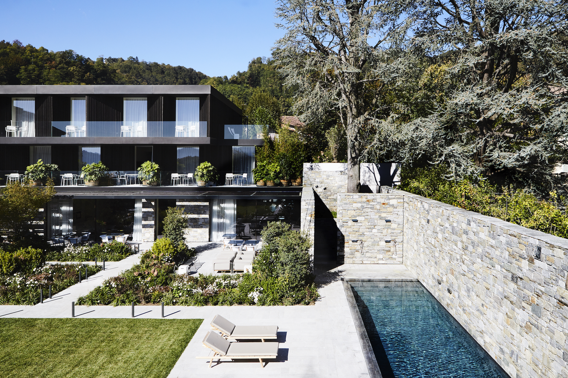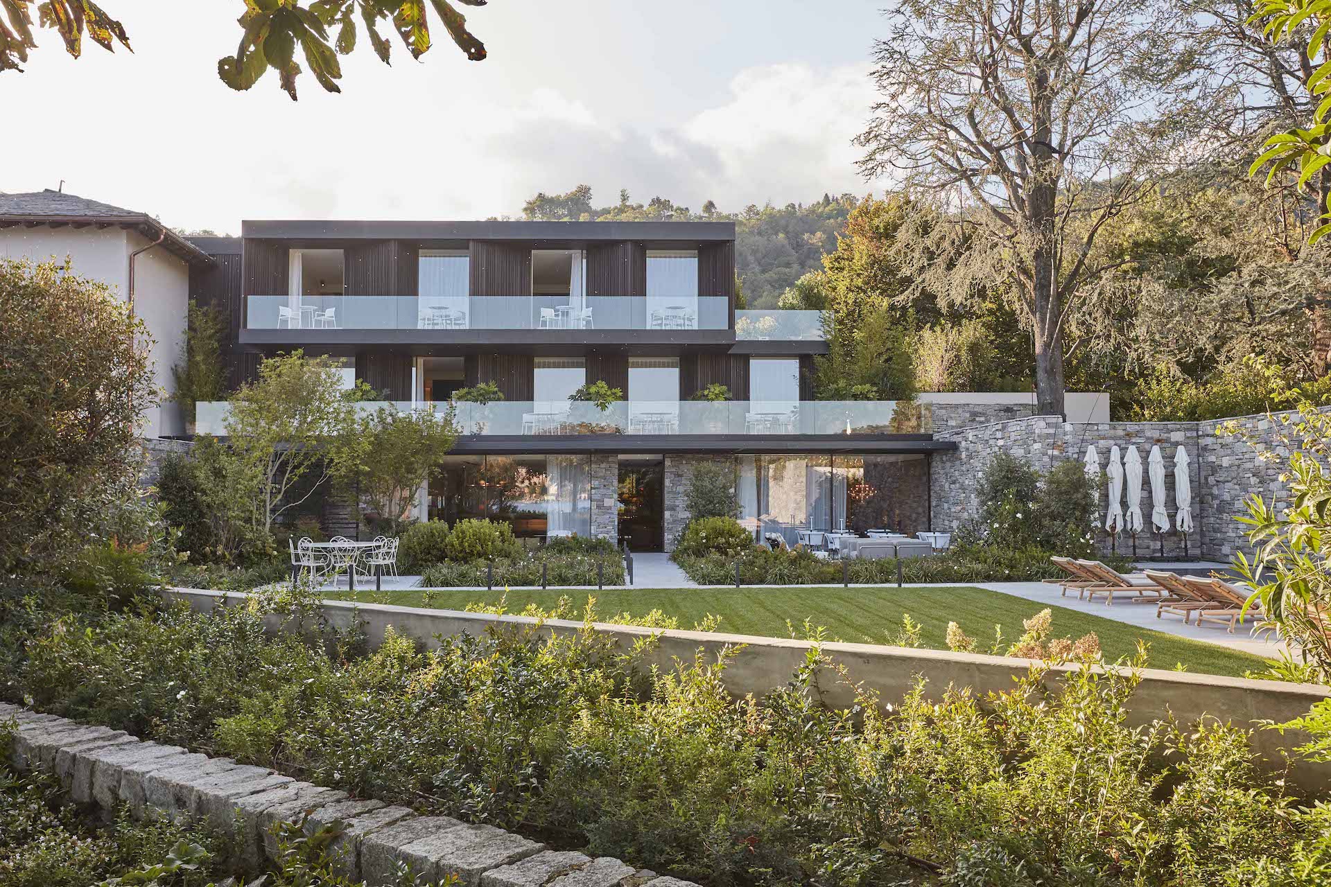 A view of the Orta lake through this luxury villa’s large windows is worth travelling for. We are in northern Italy and Orta is one of the most beautiful lakes in the region. This large contemporary deluxe Italian villa built for vacation rentals is a work of art. Sleek, sophisticated, it has been designed by the famous architect Piero Lissoni, who wanted to integrate two lake buildings into one single large home.