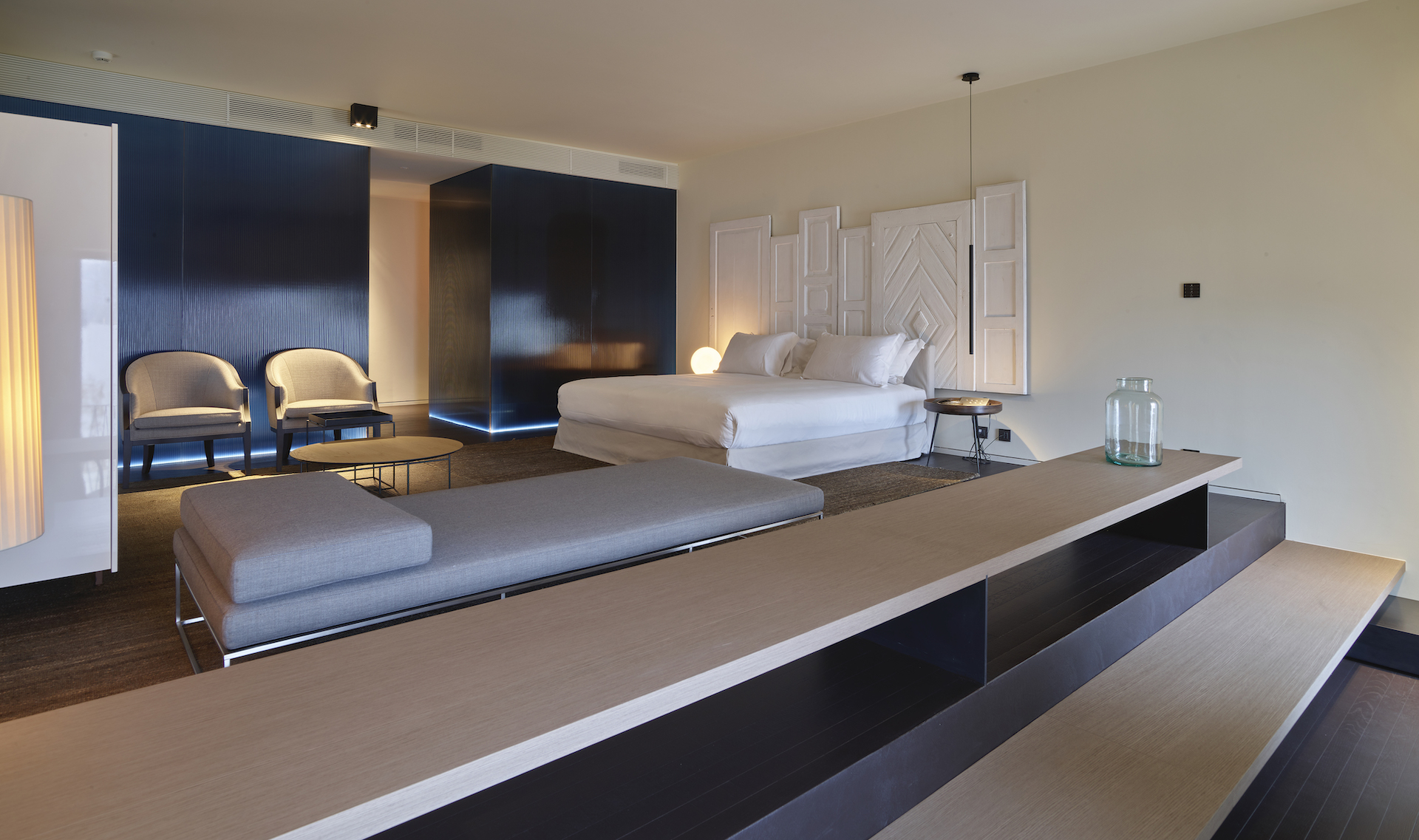 bedroom 6 20m2, double bed (bed size 160x200cm, 63x79inch, not convertible into a twin) with flat screen TV, small lounge area, direct access to a private large terrace with lake view and en suite bathroom with walk-in shower (plus extra hand held shower) and Turkish bath.