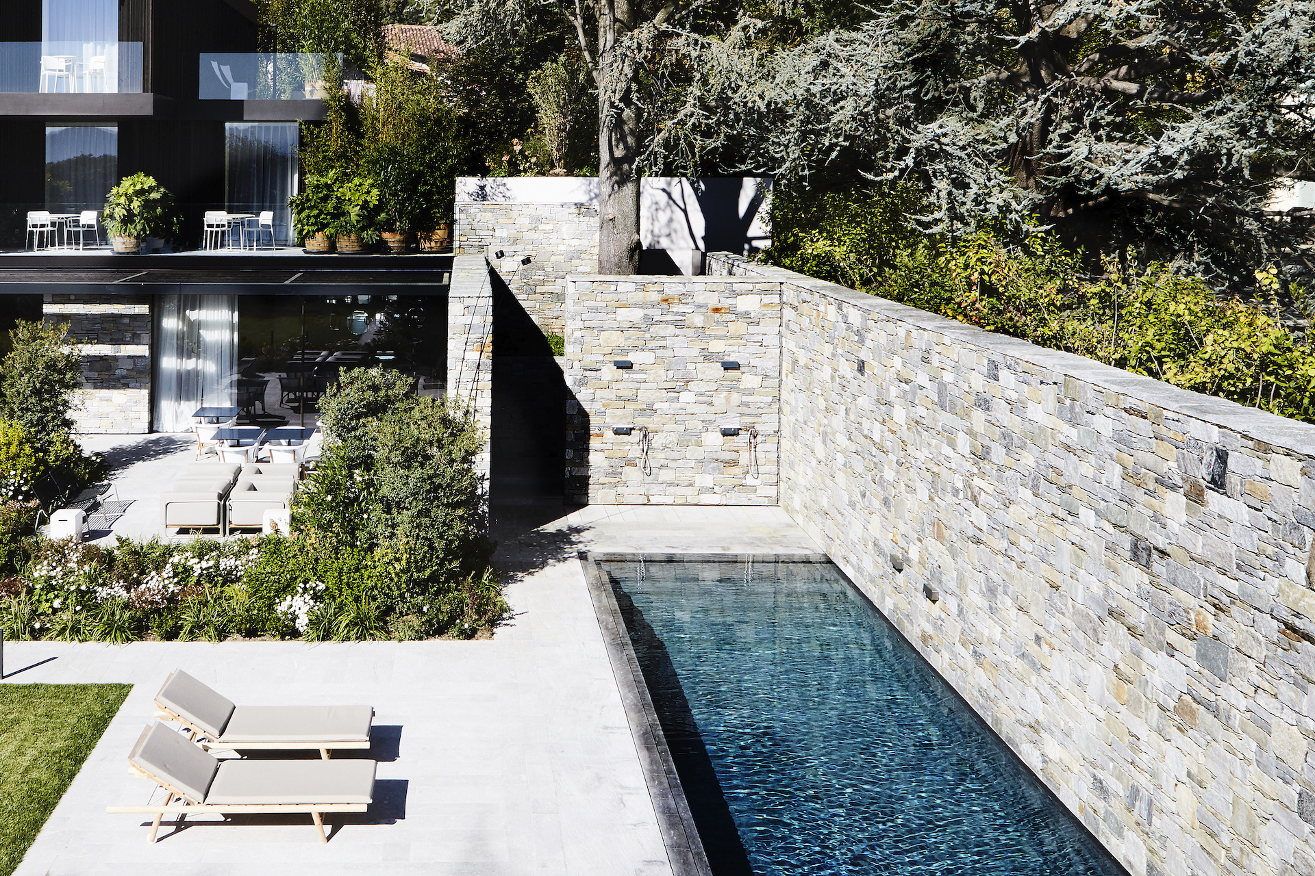 Connecting the nineteen-century property to the new one, the architect has created an incredible harmony among the villa, the garden and the lake. Casa Lake Orta, overlooking the square of the village of Pella, is large enough to host up to 22 guests all of them in bedrooms of the same luxury standard. The elegance of the eleven rooms located on the first floor is restored by the neutral shades of the furnishings; the wood contrasts beautifully with chrome and glass, heating the interior.