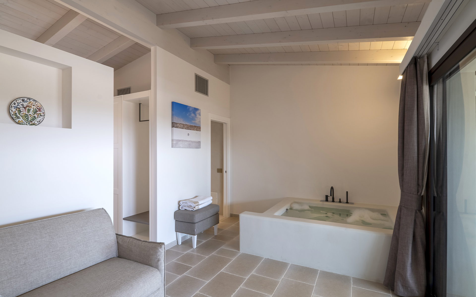 - spa (the use of the spa is upon request and with an extra charge) equipped with Turkish bath, indoor Jacuzzi, emotional shower, and sauna