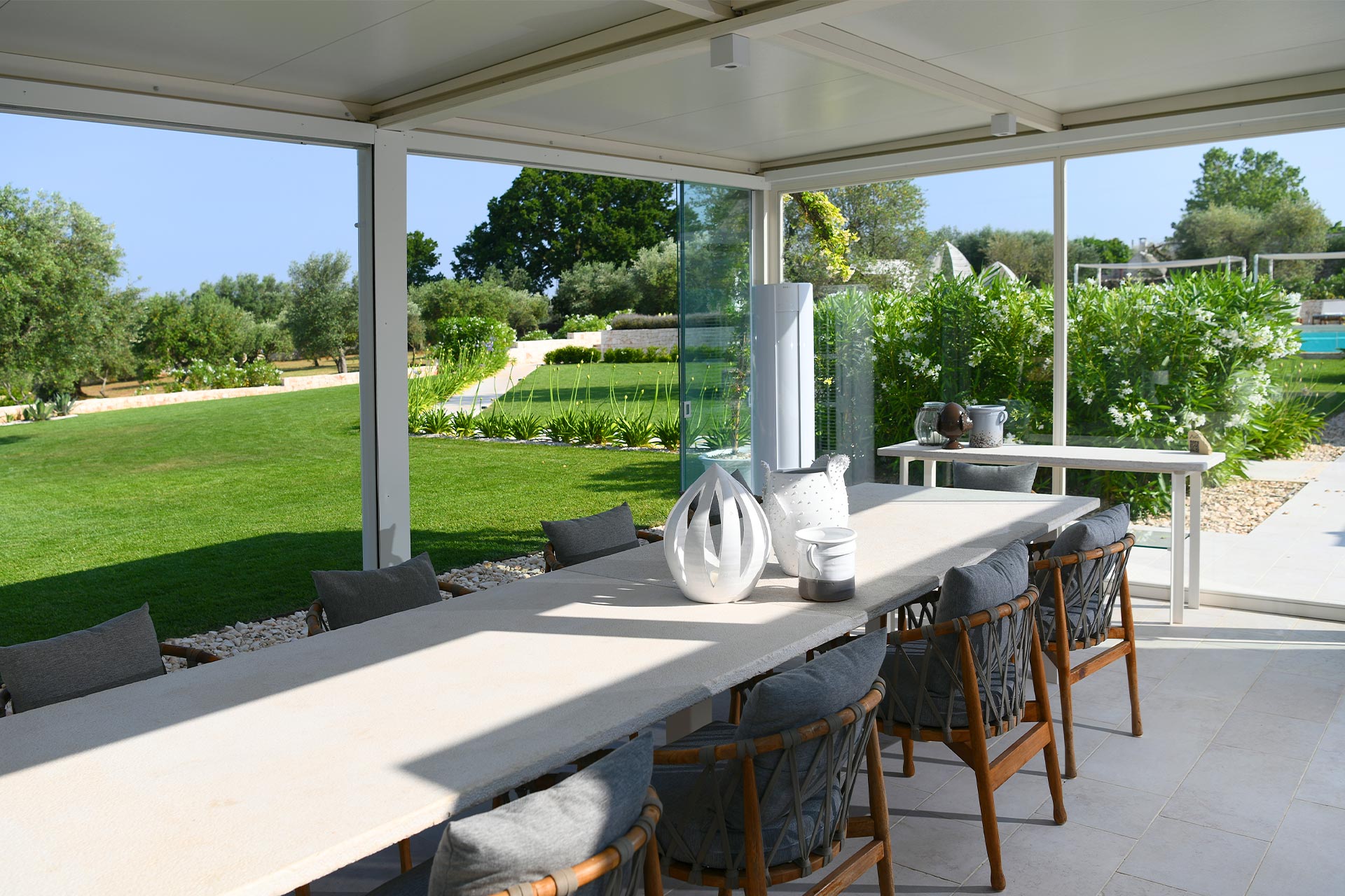 concierge service, daily maid service (up to 6 hours of service per day), breakfast basket with local Apulian products for Sunday morning, table setting for breakfast from Monday to Saturday (cost of food and beverage not included, no cooked meals), change of linen on Wednesday, change of towels when needed, air conditioning, house heating, pool heating from May to October, security service, final cleaning.not included