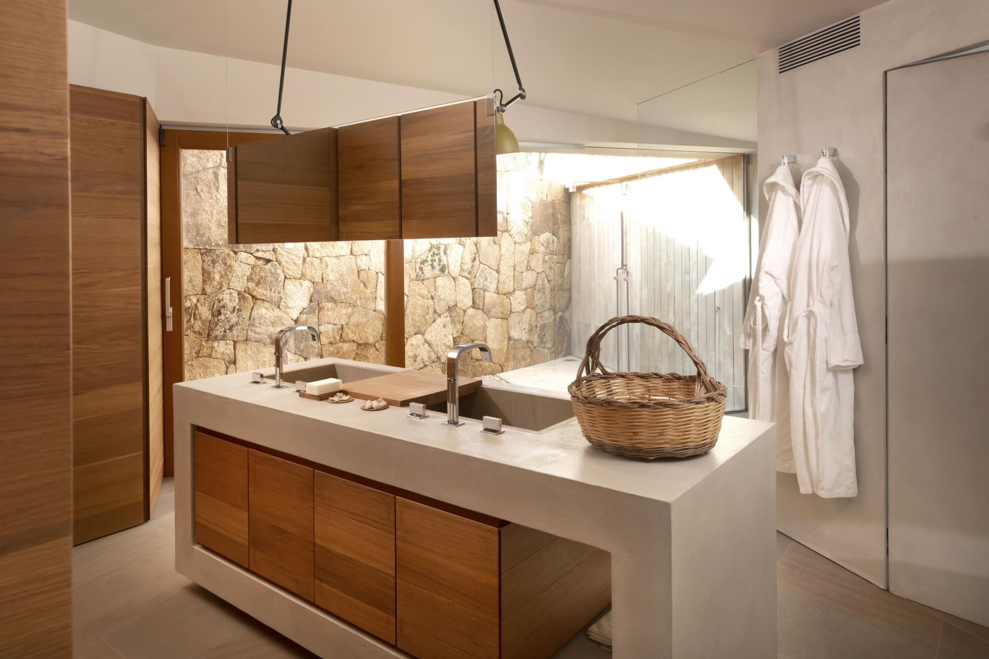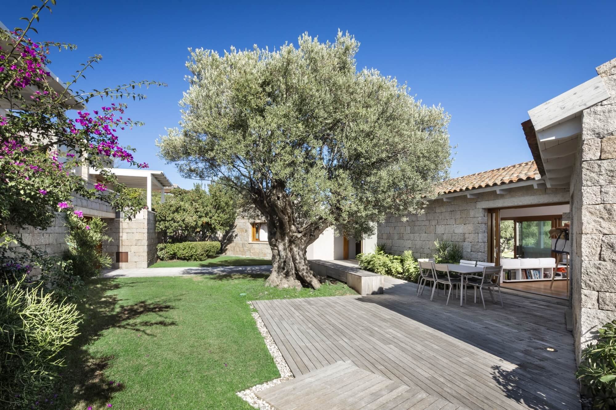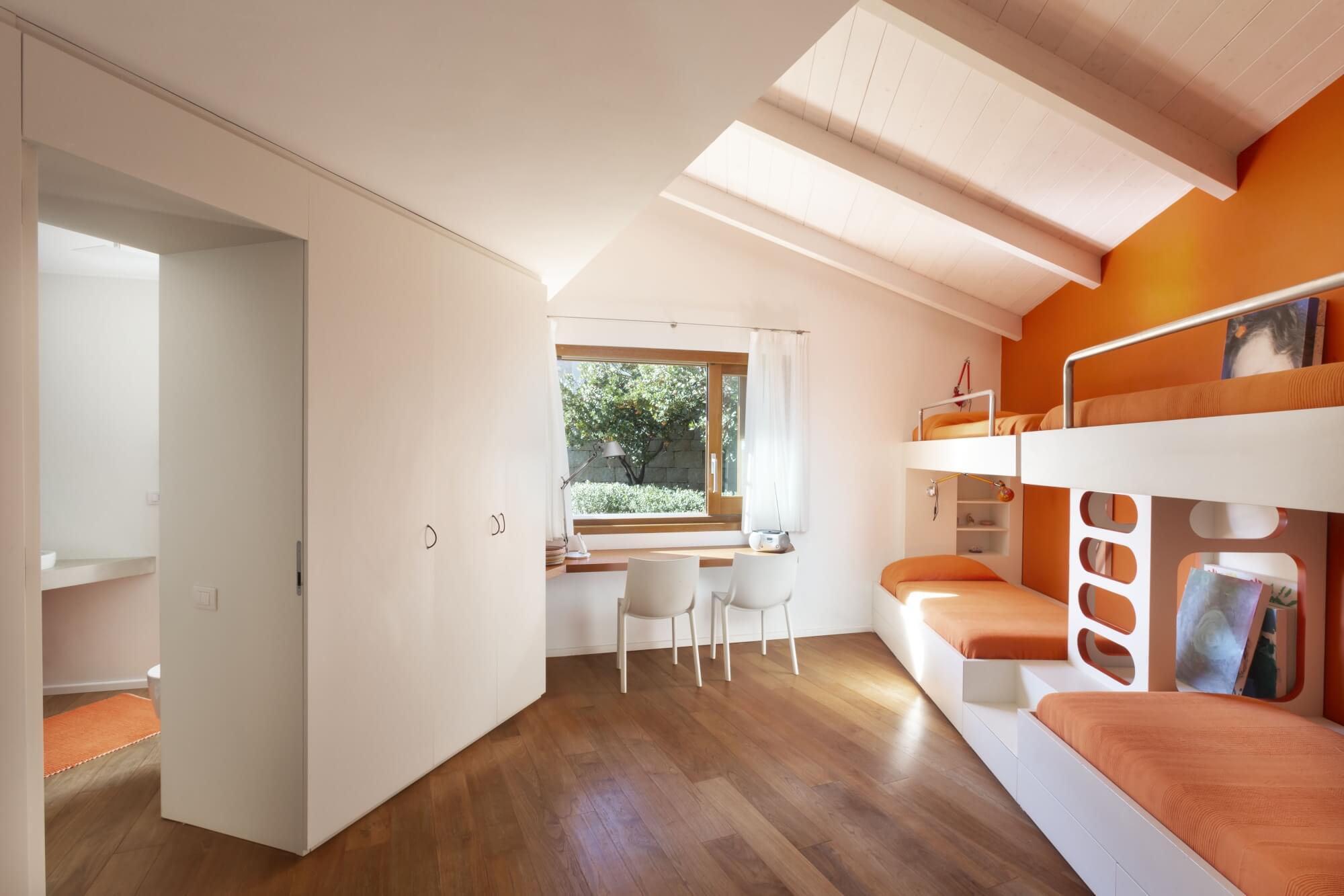 Each bedroom is spacious and bright, featuring modern en suite bathrooms, ensuring utmost comfort and privacy for guests. Villa Nerina features a main villa, including two double bedrooms and a quadruple bedroom with two sets of bunk beds, suitable for children travelling along for a dreamlike family vacation. There are two other guest houses, for a total of three additional bedrooms, each one completed by an en suite bathroom. An additional annex is available for staff travelling along with guests equipped with a double bedroom and a kitchenette.