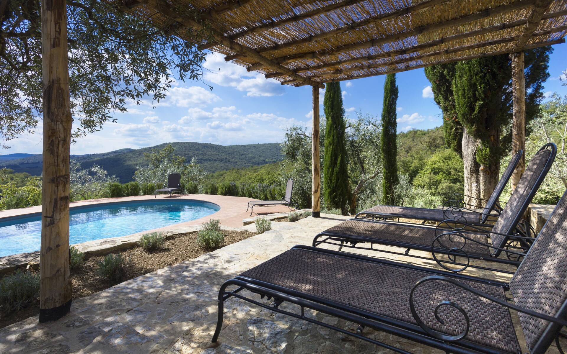 Castello di Brolio 9km/6miles, Radda in Chianti 11km/7miles, Greve in Chianti 30km/18,6miles, Siena 30km/18,6miles, Florence 65km/40,3miles.