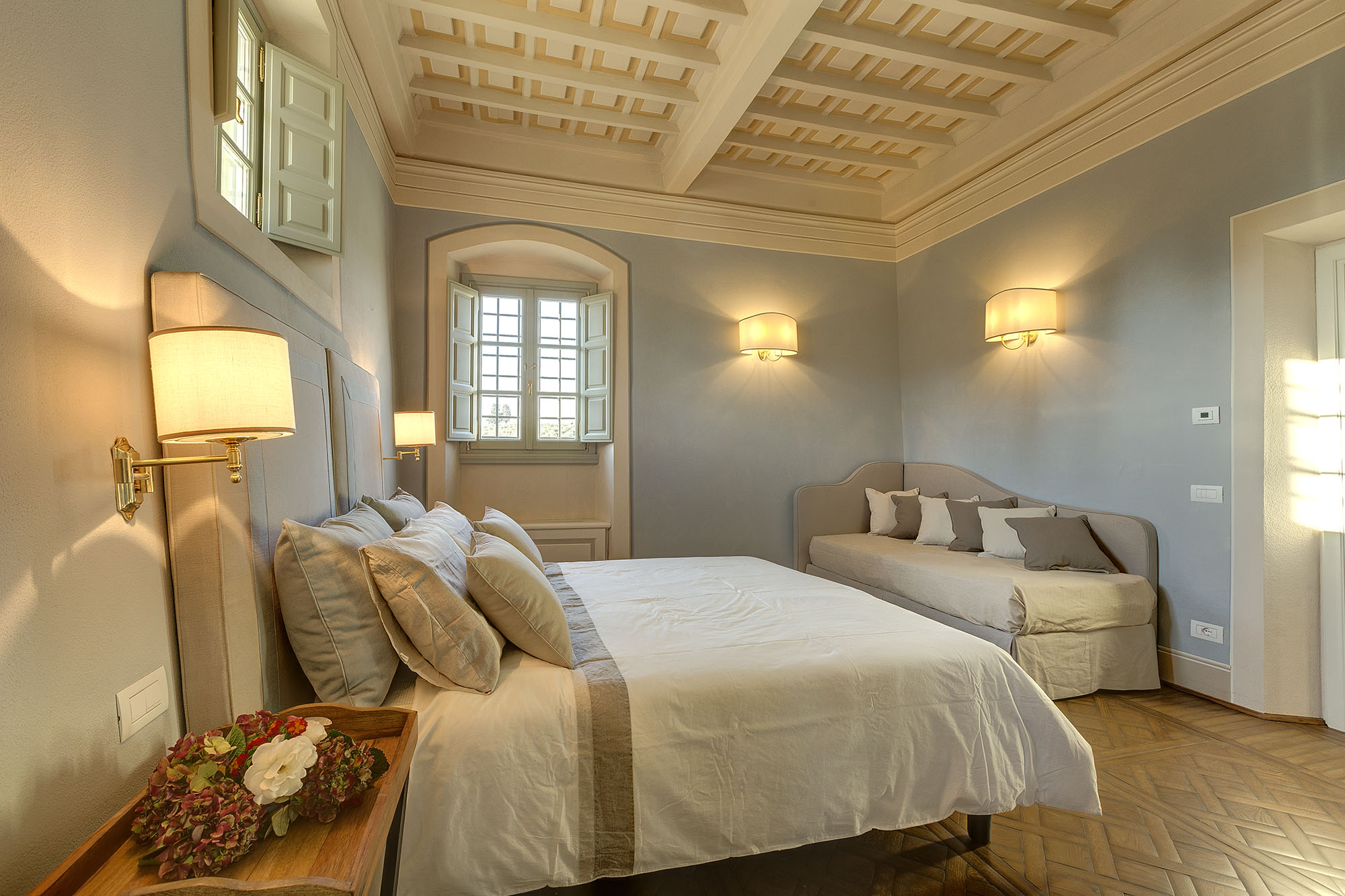 pool heating upon consumption (to be requested at least 14 days prior arrival), extra maid service EUR 40 per hour per staff (minimum 4 working hours), cooking service first option: for lunch and dinner EUR 1,000 per day for up to 37 guests (1 chef involved, food and drinks not included, to be requested at least 30 days prior arrival); EUR 600 for lunch and dinner per day (1 sous-chef involved, food and drinks not included); EUR 750 (1 restaurant manager involved, food and drinks not included), the number of staff needed depends on the number of guests. Cooking service second option: dinner starting from EUR 95 per person (food included, drinks not included), light lunch starting from EUR 50 per person (food included, drinks not included). Waiter service EUR 220 per service, head-waiter EUR 350 per service, extra night service hours from 11pm to 7am EUR 45 per staff per hour. Shopping service 20% of the total amount of the invoice with a minimum fee of EUR 30, baby sitter EUR 45 per hour, pets allowed upon request EUR 280/pet per week, city tax to be paid upon departure.wedding fee