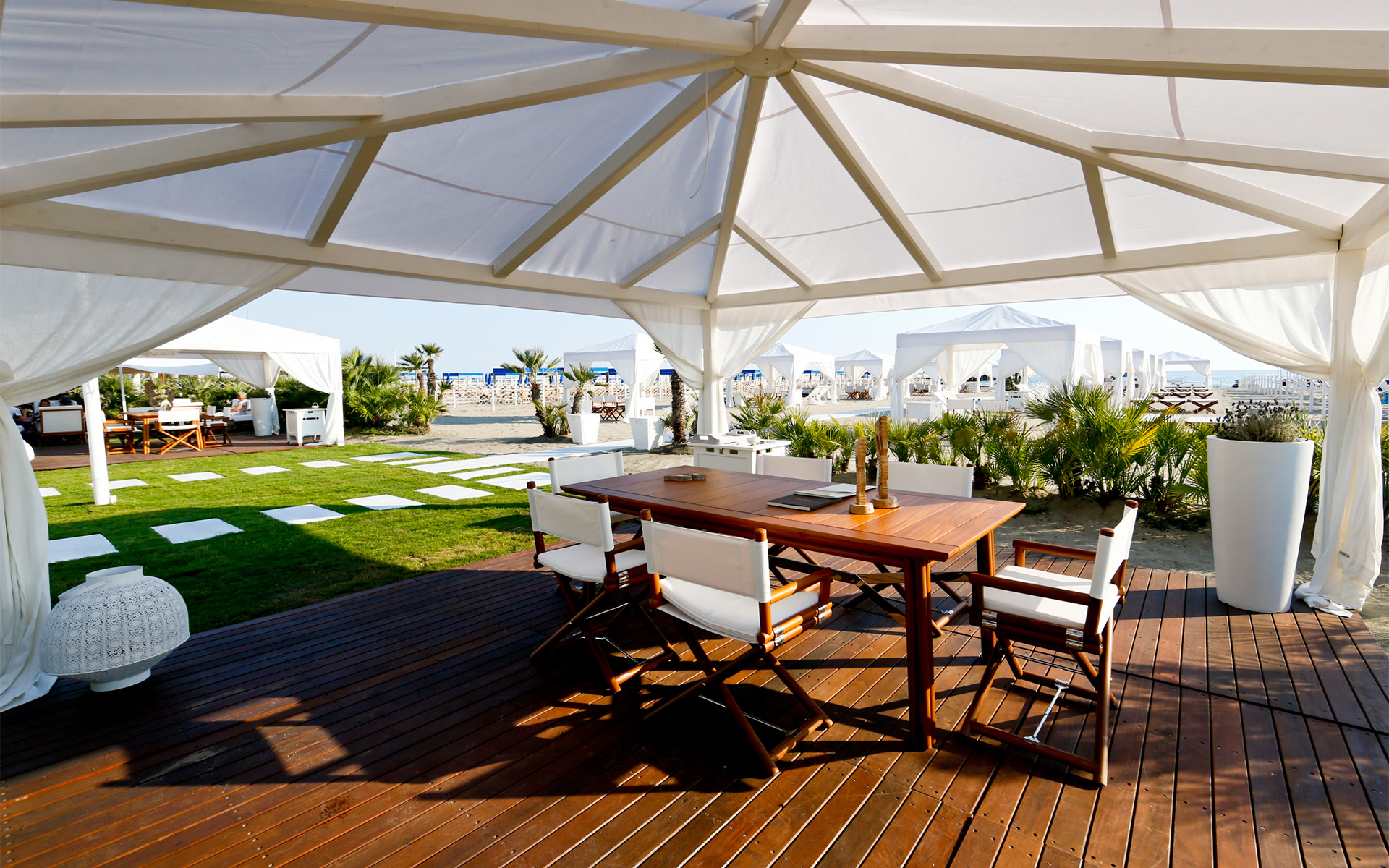 concierge service, butler service from 7 am to 11 pm, chef and waiter's service from 7 am to 3 pm for breakfast and lunch, daily change of linen and towels, private beach club access, car with driver for transfers within Forte dei Marmi from 9 am to 7 pm, water, coffee, tea and bottled non-alcoholic drinks, use of spa facilities, use of fitness room.not included