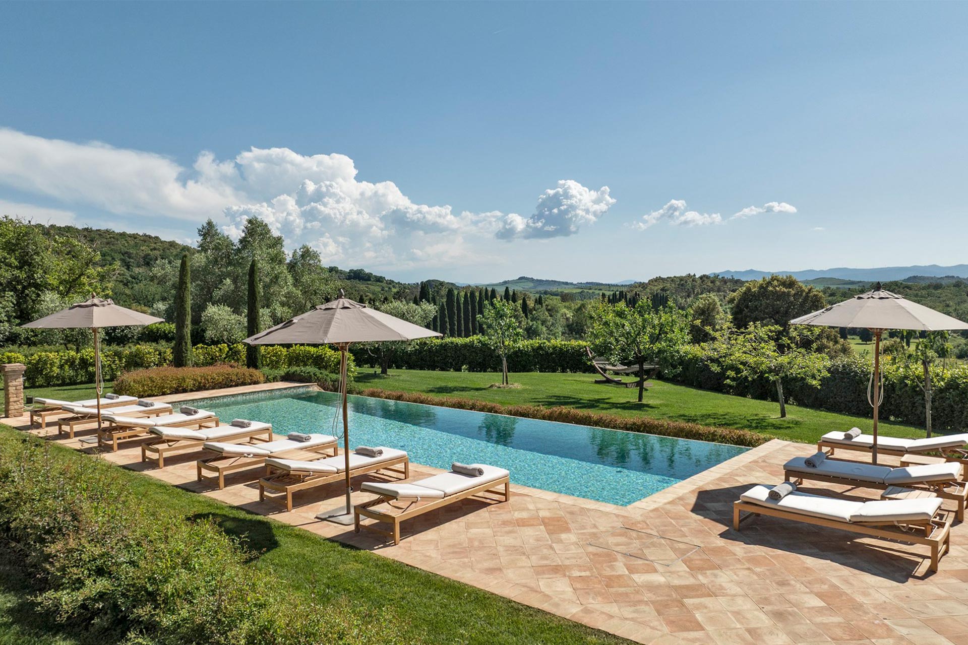 borgo Castelfalfi 7km/4miles, Montaione 17km/11miles, San Gimignano 27km/18miles, Volterra 37km/23miles, Pisa 61km/38miles, Lucca 62km/39miles, Siena 74km/46miles, Florence 87km/54miles.