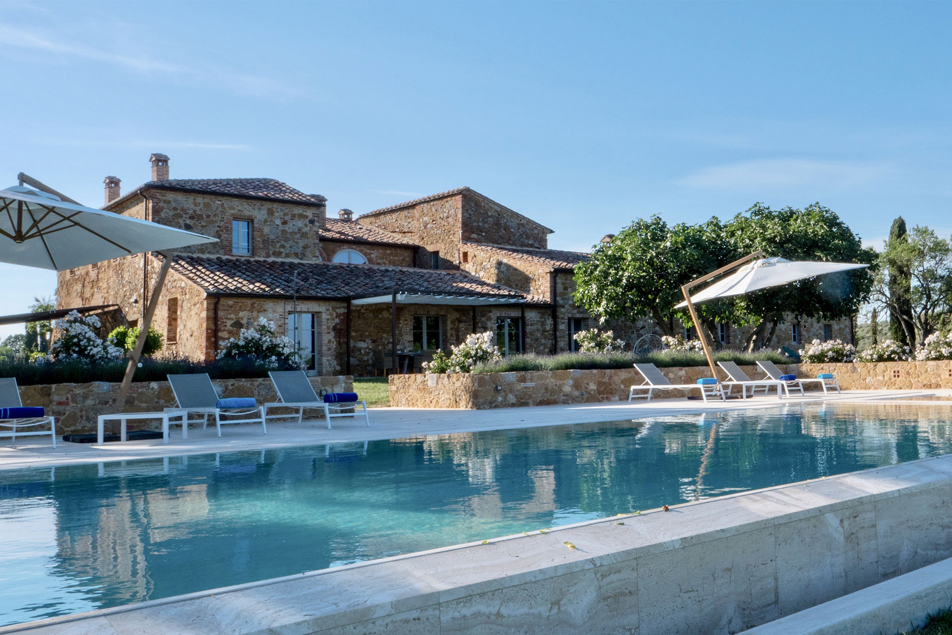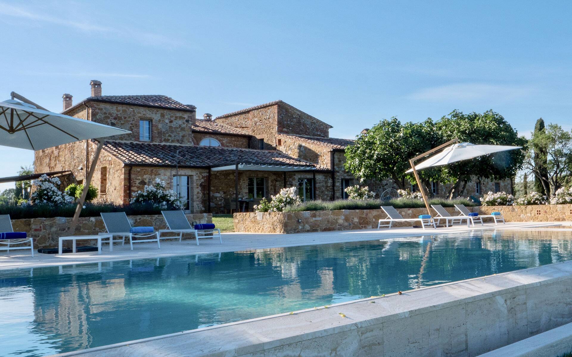 Pienza 8,5km/5,2miles, Montepulciano 11km/7miles, Bettole, 14,6km/9miles, Passignano sul Trasimeno 50km/31miles, Siena 64km/39miles, Perugia 81km/50miles, Florence 121km/75miles.