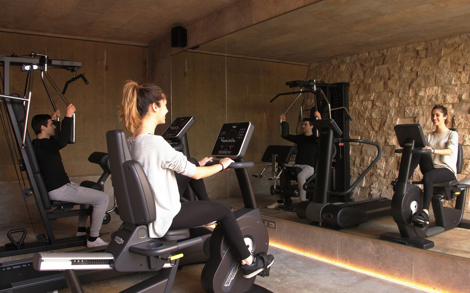 - gym outdoor equipped with: bike, treadmill, weights