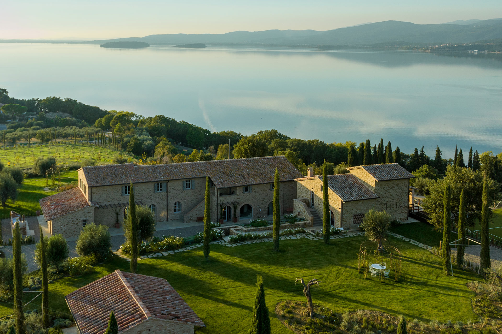 San Feliciano 4km/2,4miles, Passignano sul Trasimeno 10,6km/6,5miles, Perugia 26,8km/16,6miles, Cortona 32,4km/20miles, Montepulciano 47,2km/29,3miles, Assisi 48km/29,8miles, Arezzo 59,4km/36,9miles, Todi 65,9km/40,9miles, Montalcino83,4km/51,8miles, Siena 92,3km/57,3miles, Orvieto 81,1km/50,3miles, Greve in Chianti 120km/74,5miles, San Gimignano 129km/80,1miles, Florence 133km/82,6miles, Rome 190km/119miles.