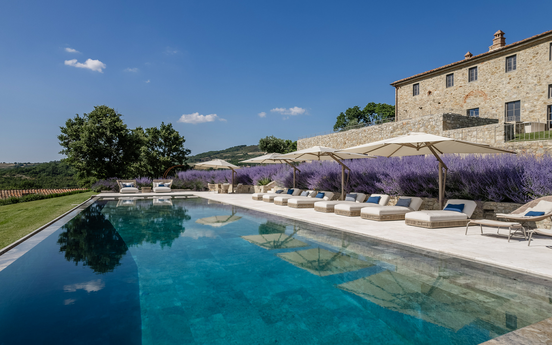 utilities (electricity beyond 100wkh per day and gas beyond 100m3 per day), extra maid service EUR 35 per hour, shopping service upon request, 3-courses light lunch EUR 50 per person (food included, drinks not included), 5-courses lunch or dinner EUR 72 per person (food included, drinks not included), brunch EUR 61 per person available from 11:30 am to 2:30 pm (food included, drinks not included), pizza party EUR 55 per person (food included, drinks not included), BBQ dinner EUR 95 per person (food included, drinks not included). Cooking service includes food and table preparation and kitchen cleaning. In-house products (wine, olive oil, balsamic) upon extra cost, pet fee EUR 650 per week per pet (upon approval).The price of the extra services, which need to be paid directly to the service providers, can vary according to their availability.