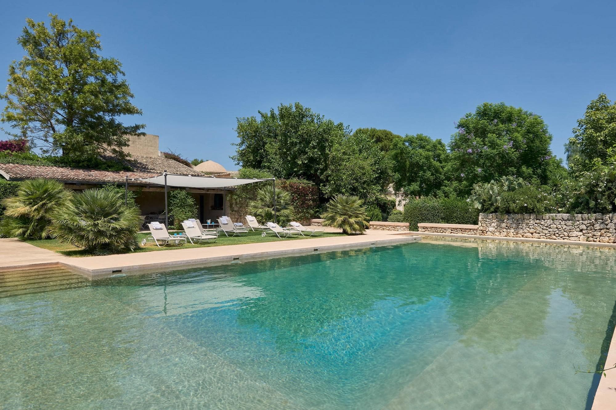 In order to fully experience the unique atmosphere of Sicily, we recommend you choose the grandeur of villa Siciliana for your larger family gatherings and Italian-style prestigious weddings. This villa is a magnificent former farmhouse nestled just 37 km away from the beautiful town of Syracuse, offering unparalleled facilities of the wellness centre with a Turkish bath, sauna and swimming pool, with its expansive aromatic garden providing a stunning backdrop for any occasion. Home in Italy is ready to accompany you in planning your stay. This unique estate boasts 12 elegant double bedrooms and vast open spaces perfect for grand celebrations. Let the property’s refined atmosphere create the perfect setting for your unforgettable moments in Italy.
