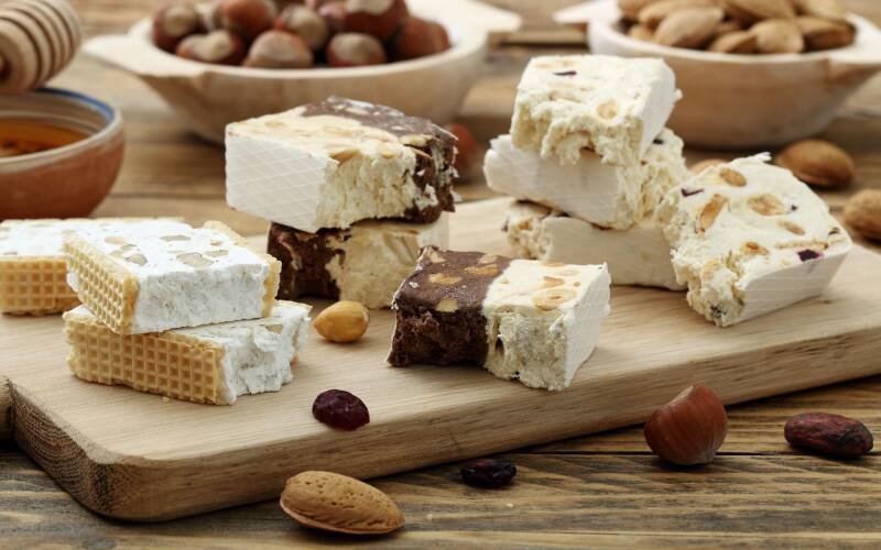 A cherished classic of the Italian holiday season, torrone is a refined confection crafted from the finest honey, toasted nuts and delicate egg whites. Regions such as Cremona, Sardinia and Sicily are renowned for producing exceptional artisanal versions that elevate this traditional sweet to gourmet status. During Christmas, master confectioners create limited edition varieties enriched with pistachios, citrus or rich chocolate. For travellers seeking a luxurious taste to bring home, artisanal torrone from local pasticcerie is an elegant and memorable choice.