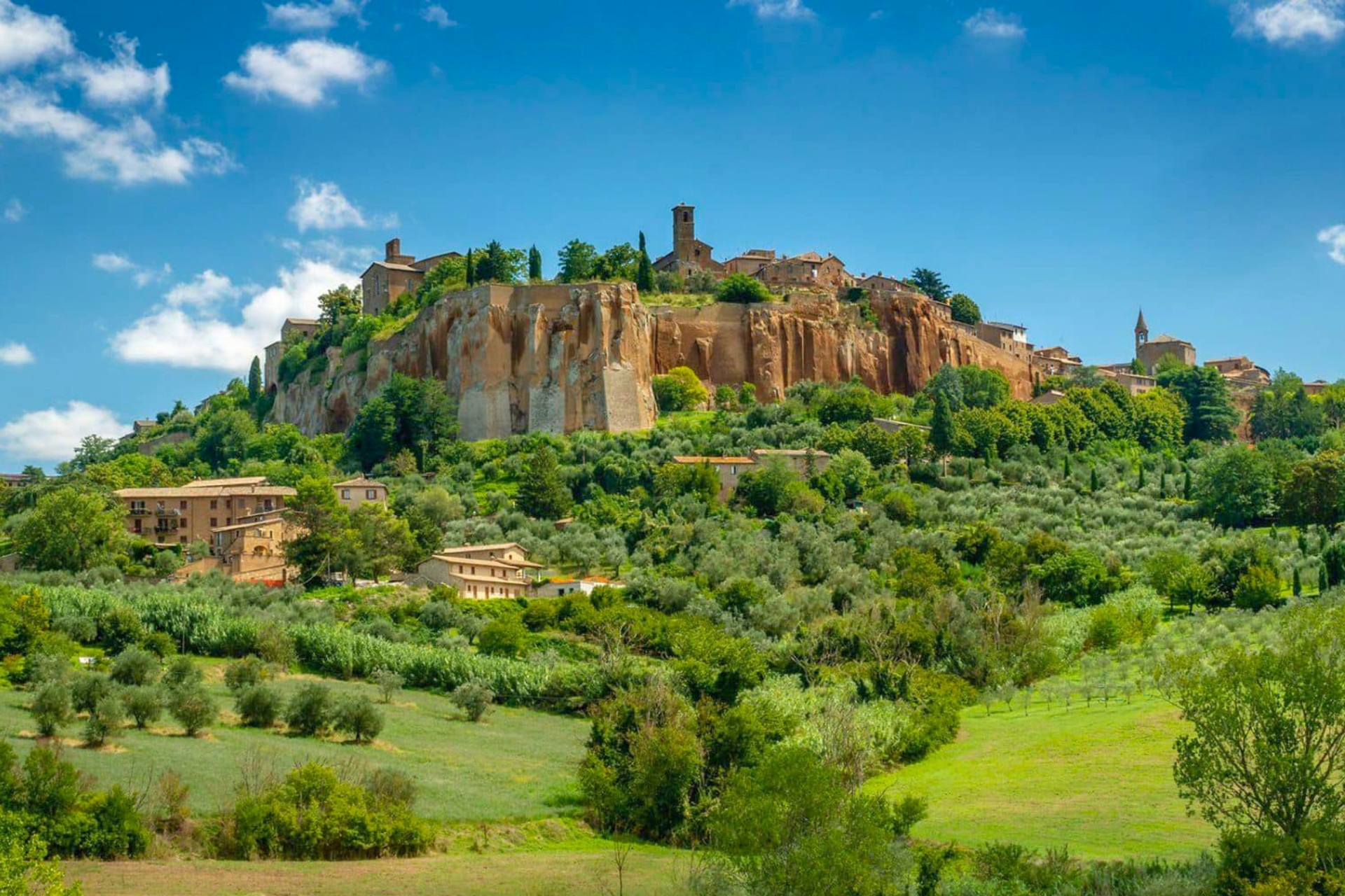 Discover Orvieto on your next luxury retreat in Umbria Let Orvieto be the highlight of your next Umbrian getaway, where timeless charm meets a truly refined and immersive experience. Perched atop a dramatic volcanic cliff, this timeless town reveals the soul of Italy through its art, history, and breathtaking landscapes. Let every moment immerse you in elegance and the serene charm of the Italian countryside.